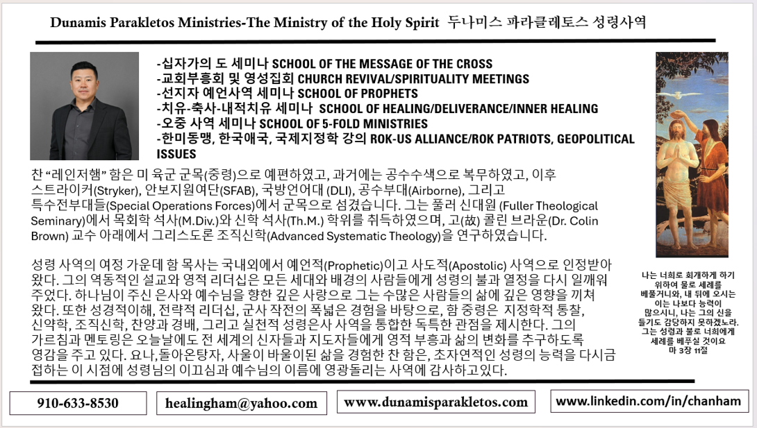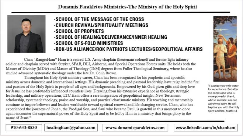 Over the years, Chan has been invited to numerous Holy Spirit ministry meetings and services, where God has worked through him to preach the gospel, lead souls to repentance and salvation, cast out demons, administer deliverance, impart the baptism of the Holy Spirit, and serve in prophetic ministry. Just as God called Moses—at the age of 80 through the burning bush—to confront Pharaoh and lead the Israelites out of slavery, God is now calling Chan in this pivotal moment. His mission is to serve and uplift churches and believers through the transformative power of the Holy Spirit’s ministry.
